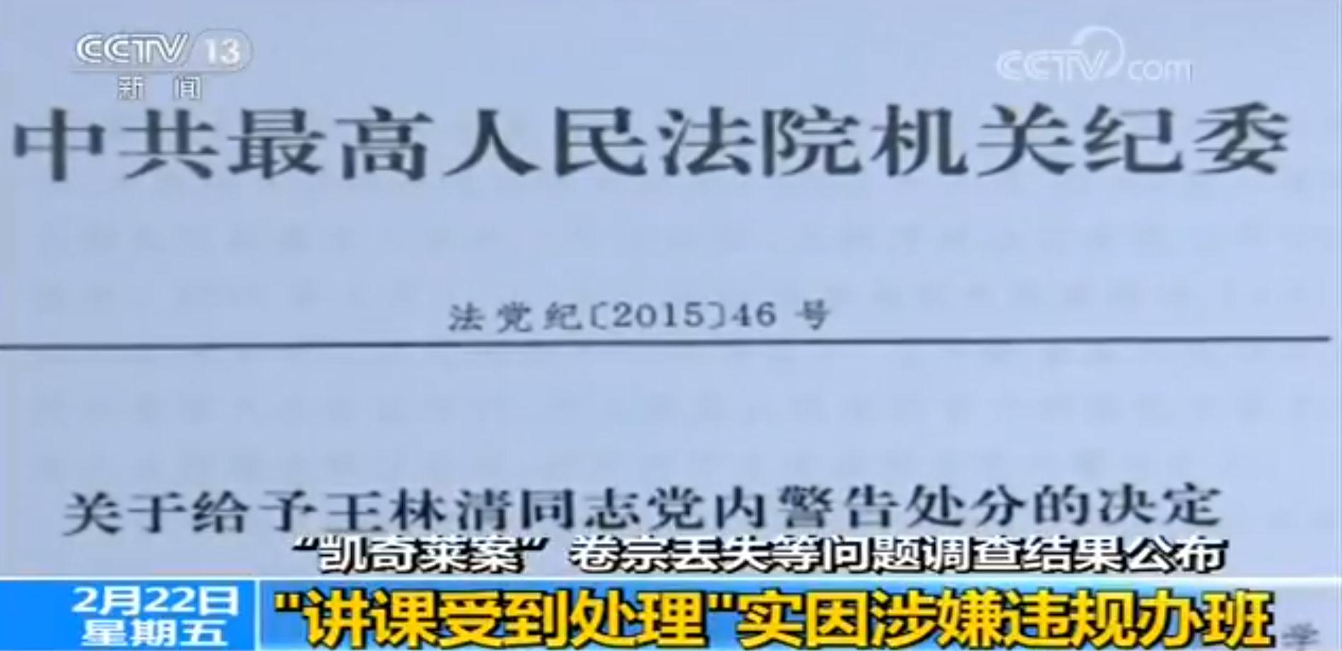 對于網傳最高人民法院二審的“凱奇萊案卷宗丟失”問題,聯合調查組查明,因工作中對單位產生不滿,2016年11月25日,王林清將臨時裝訂的“凱奇萊案”副卷拆散,把全部正卷和拆散的部分副卷材料帶回家中。