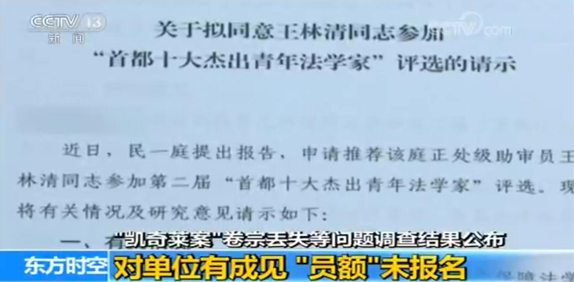 另據調查,2016年6月,最高法政治部就王林清參評第二屆“首都十大杰出青年法學家”向監察局征求意見,監察局回復“同意推薦其參評”的意見。后王林清獲得“首都十大杰出青年法學家”提名。表明最高法監察局并未對王林清參評榮譽稱號設置障礙。