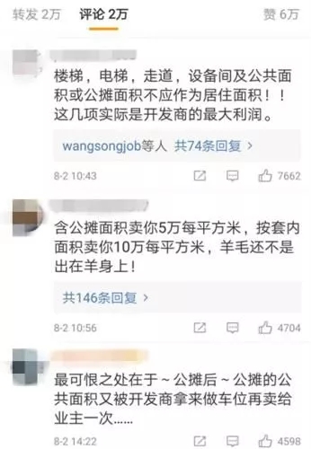 2018年7月,“瞭望智庫”微信公號發表文章談到:提到公攤面積,幾乎每個購房者都有一肚子的抱怨——花了100平米的錢,卻只買到一個70平米左右的房!