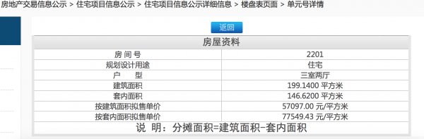 北京市一套商品房價格公示