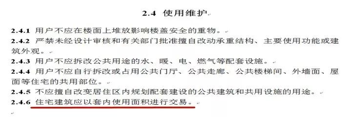 在《住宅項目規范(征求意見稿)》當中,第二部分2.4.6條指出,住宅建筑應以套內使用面積進行交易。