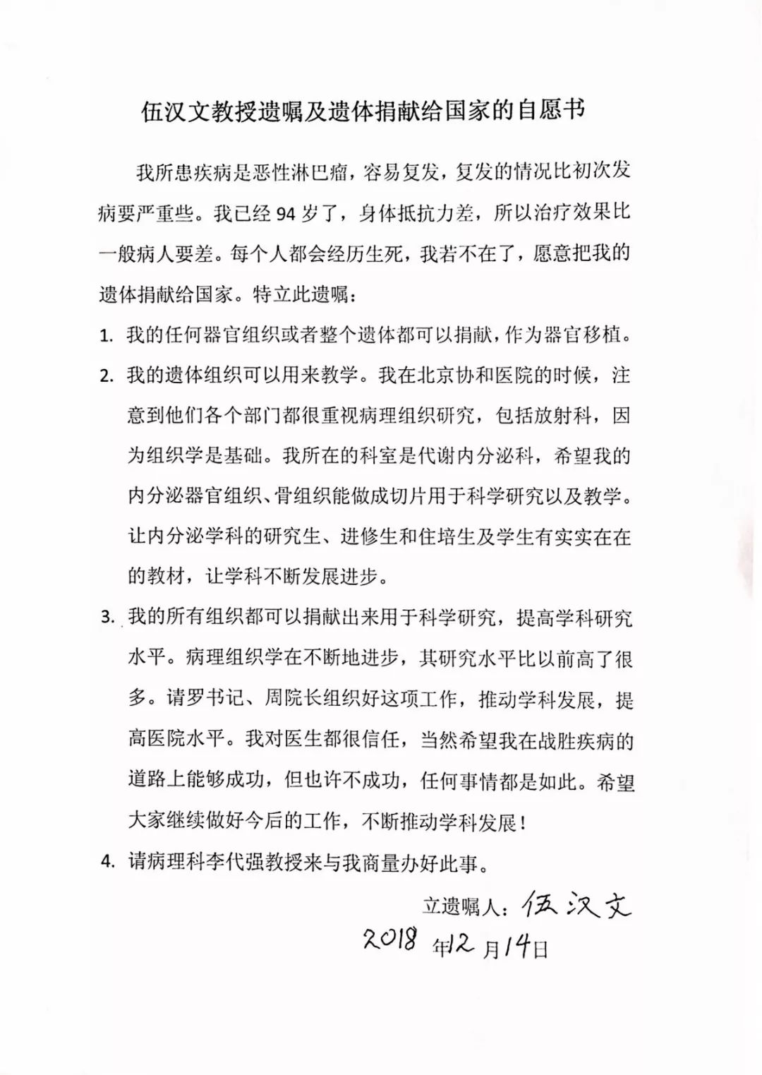 “我若不在了,愿意把我的遺體捐獻給國家。希望能用于科學研究及教學,推動學科發展。”兩個月前,一位94歲高齡的老人,寫下了這樣一份遺囑。