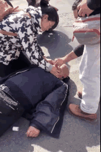 跪在馬路邊對吳師傅進(jìn)行搶救,
