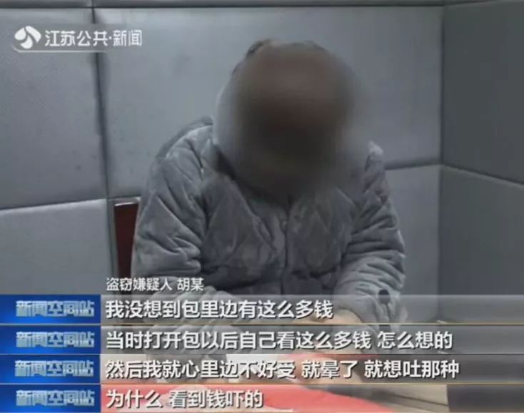 女子胡某坦白,偷包時沒想到包里會有這么多錢,看到后被嚇到頭暈想吐……