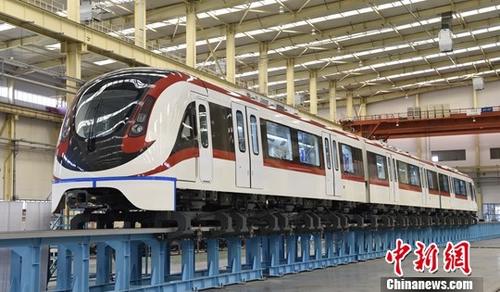 資料圖:2018年11月2日,由中車大連機車車輛有限公司制造的首列新一代中低速磁浮車在遼寧大連旅順新廠區正式下線,即將進入靜態調試階段。中新社發 劉春義 攝