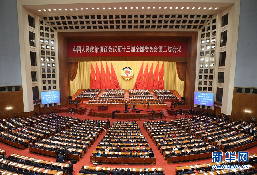 大會首先審議通過了政協(xié)第十三屆全國委員會第二次會議議程。