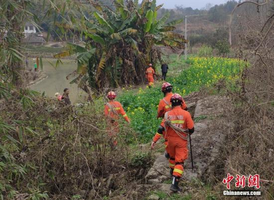 資料圖:2月24至25日,四川榮縣境內(nèi)先后發(fā)生4.7級、4.3級、4.9級地震。圖為消防員徒步進(jìn)入村莊排查地震災(zāi)情。中新社發(fā) 鐘欣 攝