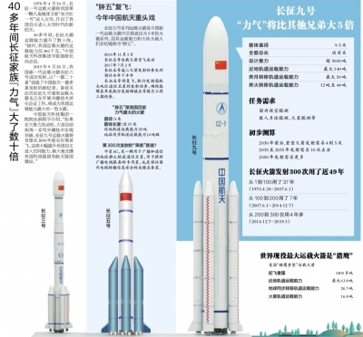 40多年間,長征火箭運載能力提升了數十倍,“彼時,我國運載火箭的運載能力僅300千克。”中國航天科技集團宇航部部長尚志說。