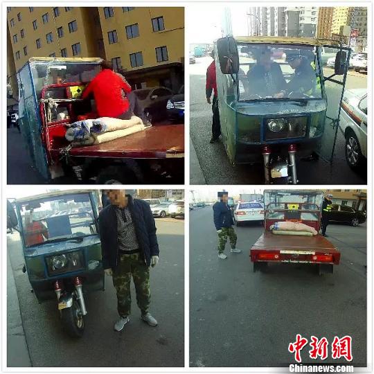 違法駕駛員駕駛的無(wú)牌照三輪摩托車。 遼寧省交警總隊(duì)提供 攝