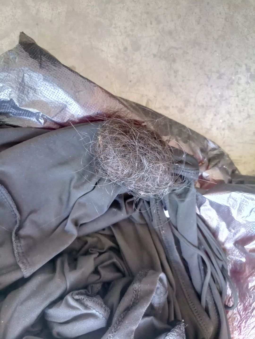 小吳被扯掉的頭發(fā)和潑濕的衣服▲
