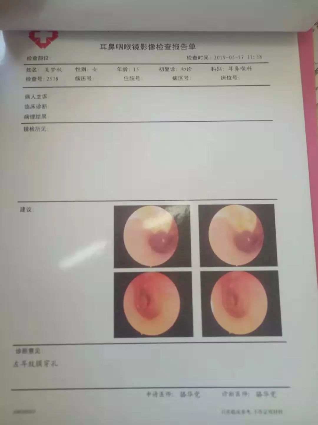 檢查報告診斷小吳左耳鼓膜穿孔▲