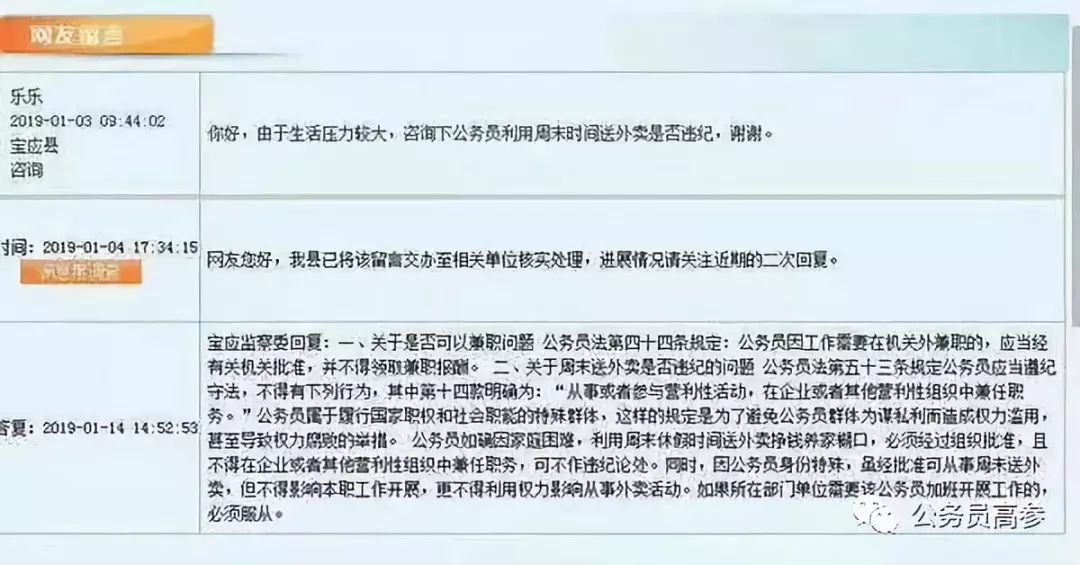 你好,由于生活壓力較大,咨詢下公務員利用周末時間送外賣是否違紀?