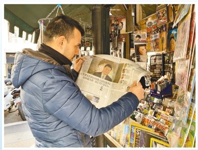 羅馬街頭,一位當地市民閱讀習近平主席在《晚郵報》發表的署名文章。