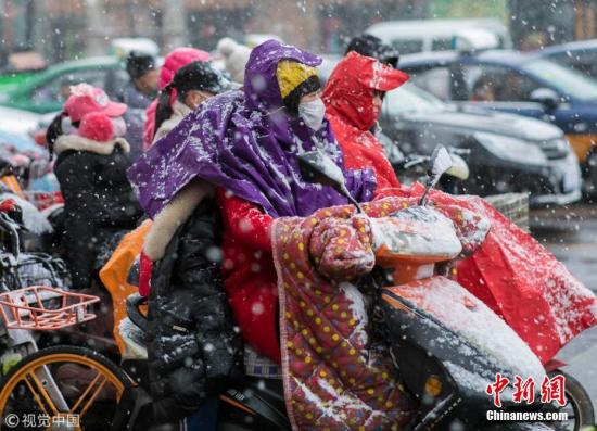2019年3月28日,受冷空氣影響,呼和浩特市出現大風降溫、雨夾雪、小雨天氣。圖片來源:視覺中國