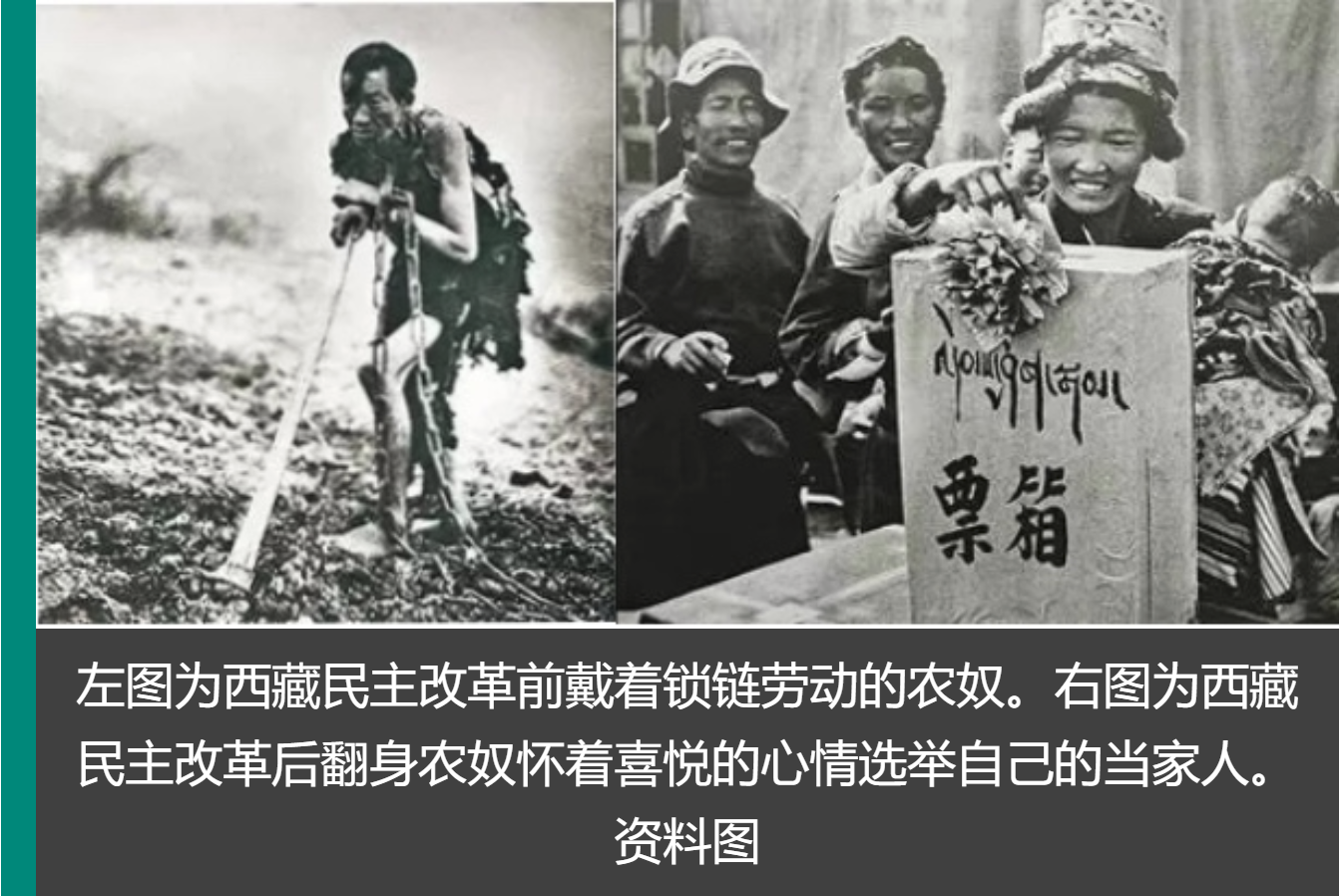 1959年3月28日,在中國(guó)共產(chǎn)黨的領(lǐng)導(dǎo)下,以解放農(nóng)奴為核心目標(biāo)的西藏民主改革運(yùn)動(dòng)拉開(kāi)序幕,由此開(kāi)辟了西藏從黑暗走向光明、從貧窮走向富裕、從落后走向進(jìn)步、從專(zhuān)制走向民主、從封閉走向開(kāi)放的歷史新紀(jì)元。
