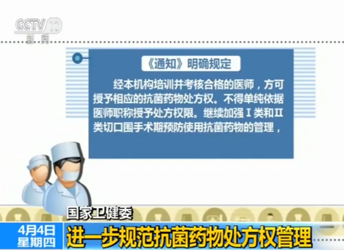 《通知》明確規定,經本機構培訓并考核合格的醫師,方可授予相應的抗菌藥物處方權。不得單純依據醫師職稱授予處方權限。繼續加強Ⅰ類和Ⅱ類切口圍手術期預防使用抗菌藥物的管理,改變過度依賴抗菌藥物預防手術感染的狀況。強調“能口服不肌注,能肌注不輸液”的原則。各地要根據抗菌藥物使用監測結果,采取針對性措施,減少不合理的預防性使用和靜脈輸注抗菌藥物。