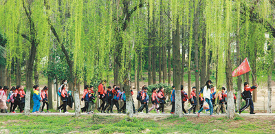 4月4日,學生在安徽淮北濉河公園踏青。清明時節,人們踏青游、放風箏、做青團……在傳統節俗中感受清明文化。