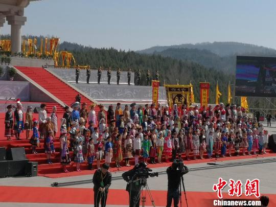 中新網(wǎng)陜西黃陵4月5日電 (記者 阿琳娜 田進(jìn))己亥(2019)年清明公祭軒轅黃帝典禮5日在陜西黃陵縣舉行。萬余名海內(nèi)外華夏兒女齊聚橋山黃帝陵,共同祭奠中華民族的人文初祖軒轅黃帝。