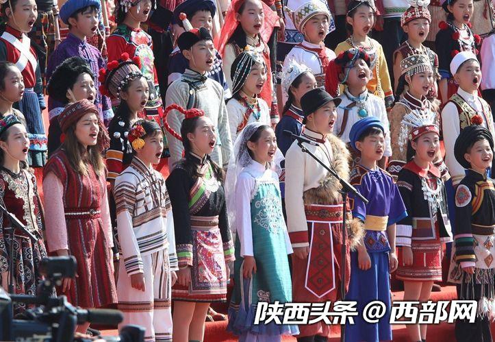 112名少年高唱《黃帝頌》。