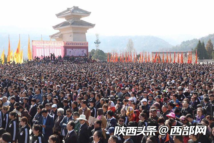 萬余名中華兒女齊聚黃帝陵軒轅殿祭祀廣場,共同祭奠人文初祖軒轅黃帝。