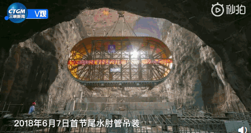 同樣在去年,建筑人員們安裝起了引水洞壓力鋼管、首節尾水肘管吊裝、首節尾水椎管吊裝、首臺百萬機組座環吊裝、首節蝸殼掛裝等一系列設備。