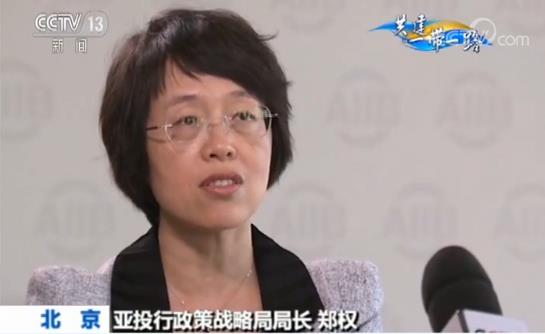 對(duì)于參與“一帶一路”建設(shè),亞投行政策戰(zhàn)略局局長(zhǎng)鄭權(quán)表示,亞投行旨在促進(jìn)區(qū)域合作、互聯(lián)互通,這個(gè)宗旨與“一帶一路”倡議是一致的。