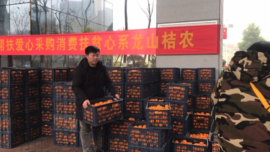 2018年底,湘西龍山縣椪柑出現賣難,扶貧隊員聯系長沙市消費者,義購貧困戶家椪柑(幫扶工作隊供圖)。