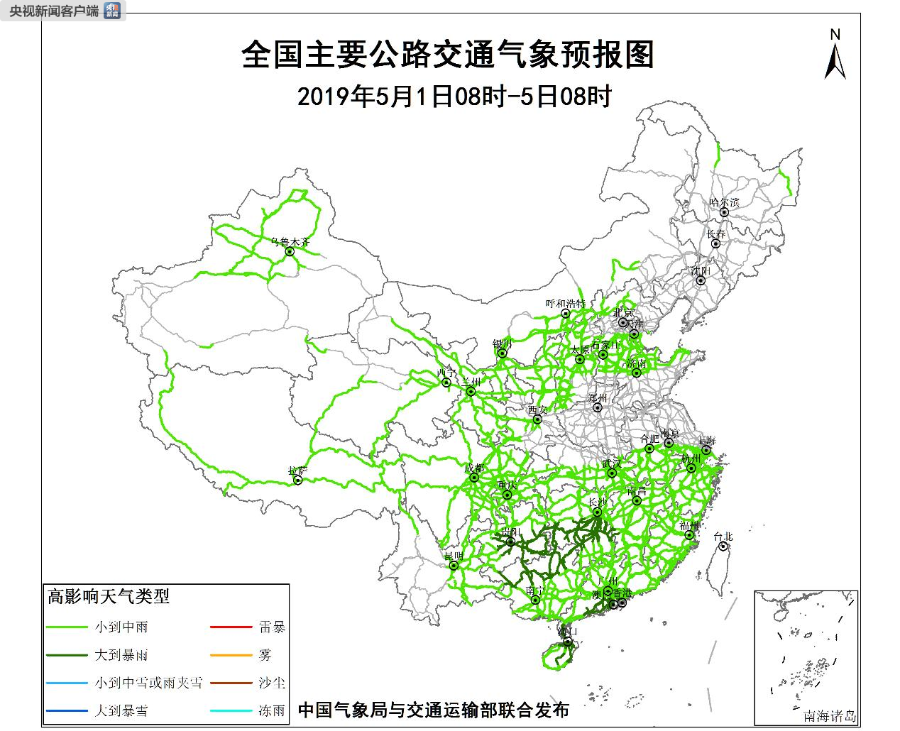5月1日08時-5日08時全國主要公路高影響天氣預報