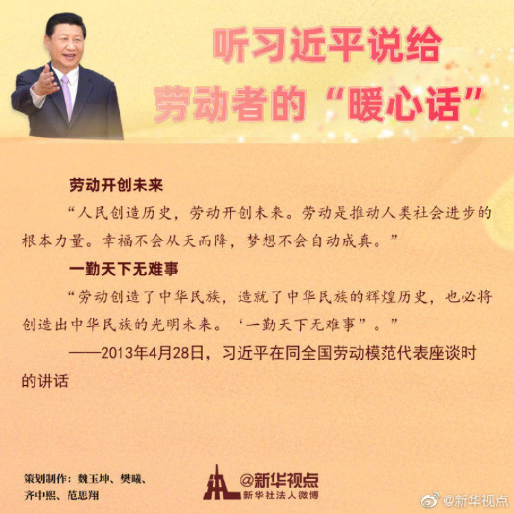 【致敬奮斗者——聽習近平總書記說給勞動者的“暖心話”】“幸福是奮斗出來的”,奮斗是勞動者最美的姿態(tài)。今天,當我們在為每一位勞動者點贊之時,一起來聽聽黨的十八大以來習近平總書記對勞動者說的那些暖心話。