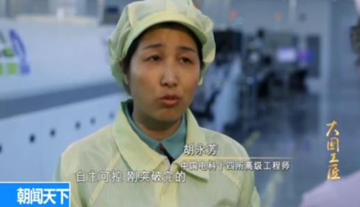 中國電科十四所高級工程師 胡永芳:就這么一個站的動作,大家已經(jīng)就是往她那邊擁了,就一個一個去顯微鏡下要給她再三確定,確定她的東西好的,那個時候就整個我們的房間,凈化廠房就沸騰了。