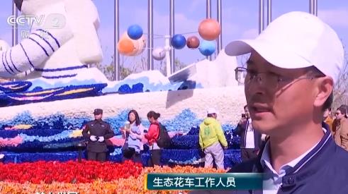 生態(tài)花車工作人員:綠雕扦插技術(shù)這塊在花車上做的一個就是包括種植基質(zhì),然后通過咱們那個穴盤苗,就是一根一根的,大概一平米有1200根植物插到里面,然后通過后期的使養(yǎng),使它就能成活達(dá)到一個好的效果。
