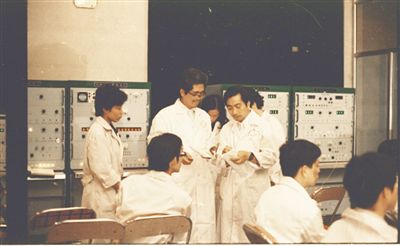 1988年,風(fēng)云一號衛(wèi)星發(fā)射前,工作人員對地面應(yīng)用系統(tǒng)進行最后復(fù)核。