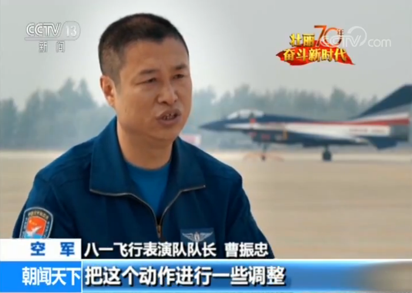 空軍八一飛行表演隊(duì)隊(duì)長(zhǎng) 曹振忠:今年是祖國(guó)70華誕,也是空軍成立70周年,借這個(gè)機(jī)會(huì)我們想把這個(gè)動(dòng)作進(jìn)行一些調(diào)整,作為表演隊(duì)來(lái)講,要有一個(gè)全新的東西。