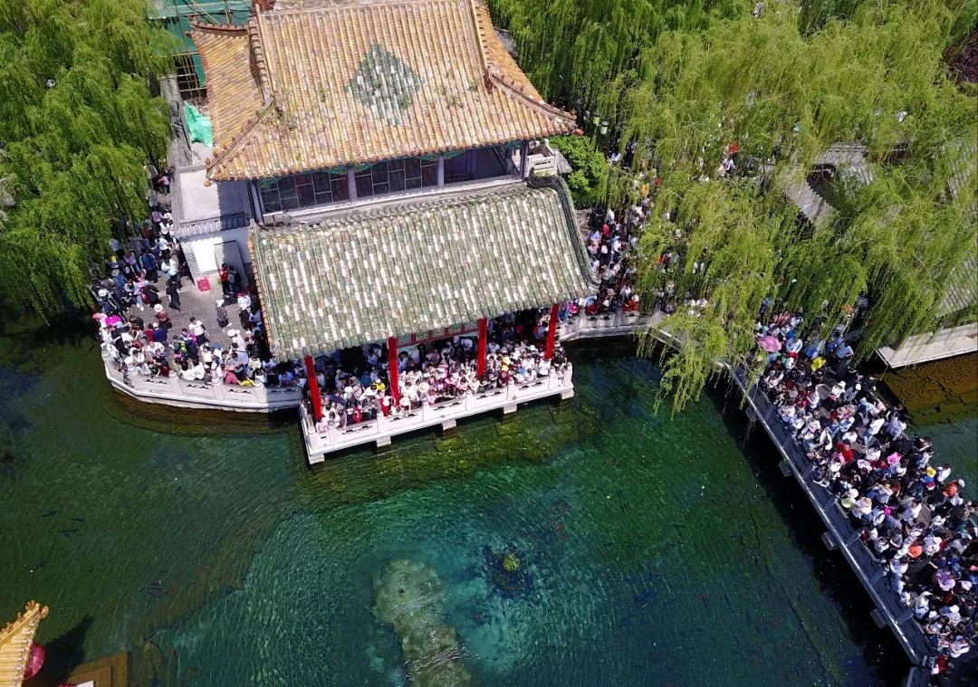 △5月4日,山東濟南趵突泉景區吸引了各地游客前來欣賞。