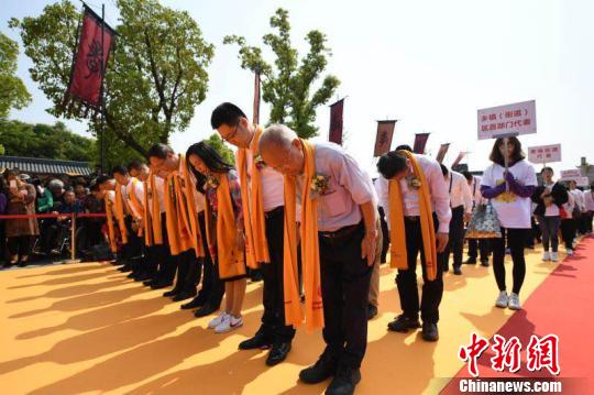 中新網上虞5月11日電(錢晨菲)“壯哉鳳山,脈接昆崗。敬乎曹娥,神馳八方……”11日,鳳凰山麓、曹娥江畔,孝女曹娥祭文的恭讀聲余音繞耳,2019中國·紹興(上虞)第三屆孝文化節暨2019孝女曹娥祭祀大典舉行。