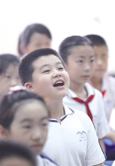 北京市育鴻中學(xué)組織中小學(xué)生收看太空授課。