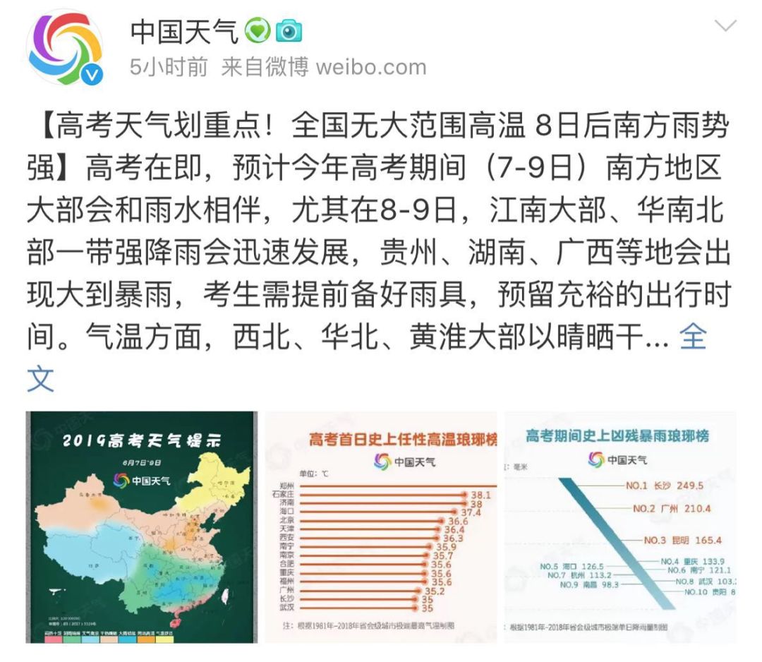 昨天,@中國天氣 給即將高考的小伙伴們劃重點啦!