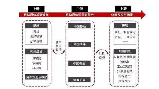 產業在世園會現場,游客是搜不到5G信號的。原因是,目前中國市場上,所有的手機都不支持5G網絡。換句話說,消費者要使用5G網絡的前提是,必須要更換手機。這對于廣大手機廠商來說,可是重大利好消息。近兩年,全球的手機需求都在減緩。2018年,全球智能手機銷量14.4億部,較2017年下降3%;作為全球最大手機市場的中國,2018年手機出貨量4.14億部,同比下降15.6%。而今年第一季度,全球智能手機出貨量繼續同比下跌了6.6%。現在,提早等來了5G商用牌照,中國手機廠商們摩拳擦掌,希望借5G商用的東風打一個翻身仗。目前華為Mate X、小米MIX 3、OPPO Reno、vivo NEX、一加7 Pro、中興Axon 10 Pro等機型已備好5G版,即將上市。在國際市場上,韓國依然搶先于今年4月發售了三星的5G手機。而在前述的美國宣布5G商用時,唯一可用的手機是聯想的Moto Z4。其實,手機作為接受5G網絡的終端之一,只是5G相關產業的一小部分而已。5G的產業鏈十分龐大。5G產業鏈的上游,主要是基站系統的鋪設、包括網絡架構的搭建,中游包括四大運營商的服務,下游包括各種終端產品和應用場景。具體見下圖: