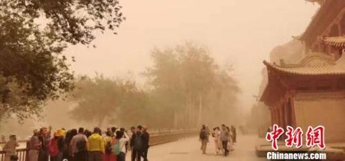 13日上午,地處甘肅河西走廊西端的酒泉市大部出現揚沙天氣,包括敦煌在內的多地遭沙塵暴襲擊。受此影響,敦煌城市公交暫停運營,當地民眾出行受到極大影響,世界文化遺產敦煌莫高窟、鳴沙山月牙泉景區亦被迫暫停開放。
