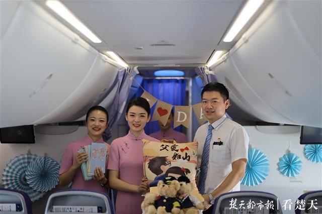 楚天都市報6月16日訊(記者胡勇謀 通訊員蘭龍輝 彭雪 周靖杰)昨日,在父親節來臨前,南航湖北分公司“木棉春風”乘務組在武漢飛往沈陽的CZ3765航班上,舉行了慶祝父親節主題活動,在萬米高空上與旅客們一起感恩父愛。