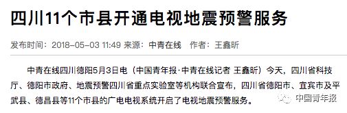 大陸地震預警網還通過包括四川公安、四川科技等近50個政務和媒體微博發布了地震預警提示。