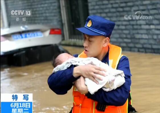 ? 據CCTV-13《24小時》報道:從6月6日開始持續三天的強降雨,讓江西省吉安市遭受巨大災情。6月10日,當地消防組織乘坐沖鋒舟抵達吉安市吉安縣梅塘鎮并進村救人。在齊腰的洪水中,剛滿月的嬰兒在消防員的懷抱中穩穩地睡著。