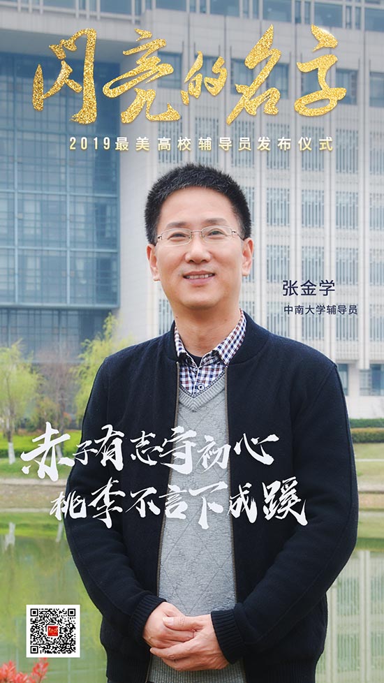 張金學是中南大學輔導員,自1987年來,他以“上班在崗、下班在職”的工作常態扎根大學生思想政治工作一線32年,所帶學生超過3萬5千名。他迎合時代,不斷創新教育方式,引領學生全面發展,鼓勵學生創新創業。
