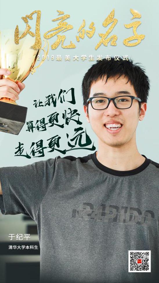 于紀平是清華大學本科生,2018年,他帶隊參加了全部3場超算國際賽事(ASC、ISC、SC),并包攬全部冠軍,使清華超算團隊實現了繼2015年后的又一次“大滿貫”,成為目前大學生超算競賽唯一實現“大滿貫”的隊伍。