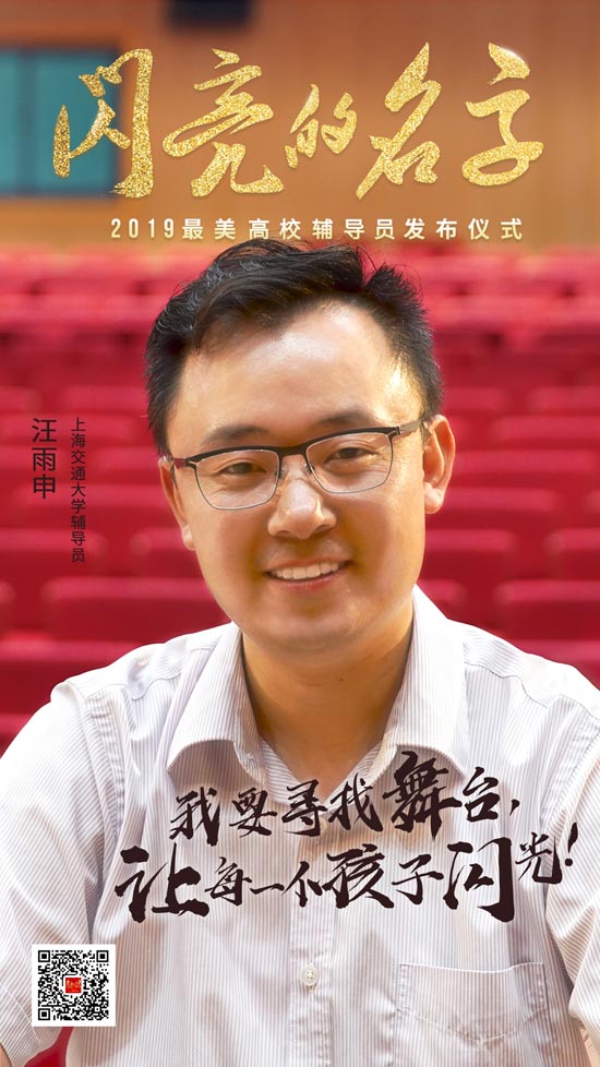 上海交通大學輔導員、學生話劇社團指導老師、校辯論隊總教練、校藝術教育和高水平藝術團負責老師,這些都是汪雨申的多重身份標簽。18年來,他堅持用“美育”筑夢青年學子,努力將學生塑造成一個個堪當大任的“全方位一流人才”。
