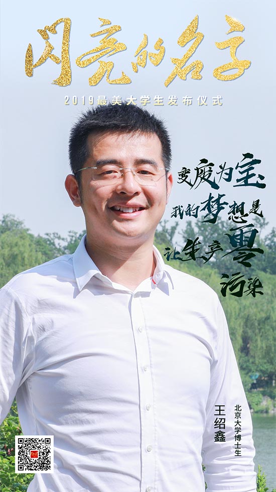 王紹鑫是北京大學博士生,在校期間,他刻苦鉆研,變廢為寶,致力于實現新技術在污染治理中的實際應用,已獲授權7項國家發明專利。