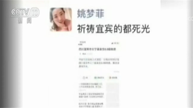 央視網消息:6月17日“長寧6.0級地震”發生后,一位名為“姚夢菲”的網民在其微信朋友圈里發表詛咒宜賓民眾的文字,引發公眾憤慨。