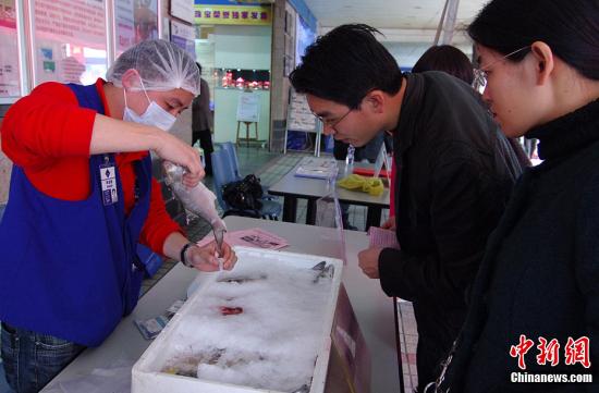 資料圖:工作人員為消費者演示食品安全檢測。中新社發 呂明 攝