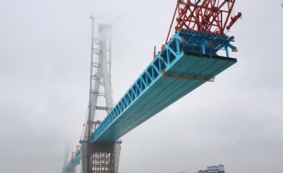● 封頂!世界最大跨度公鐵斜拉橋主塔順利建成,大橋預計于2020年1月進行鐵路橋面道砟施工及鋼軌鋪設。