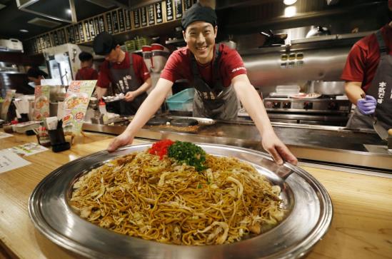 ● 日本一家餐廳推出20人份的日式炒面,迎接在大阪舉行的二十國集團峰會。